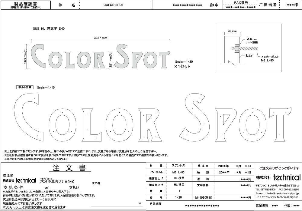 納期と価格にご納得いただき発注が確定しましたら製作用データをメールなどで送ってください。(Illustrator Ver8.0推奨)製作用データをお客さまの方でご用意できない場合、当社でデータを作成することも可能です。 データ入稿について詳しくはこちらをご覧下さい。