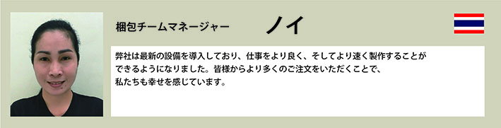 そこで、タイ人とのミスコミュニケーションをなくす為に、社長自らタイ語を習得し、スタッフたちに日本の品質の高さを徹底的に教えました。